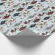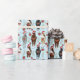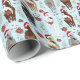 Chevaux à Santa Hats Papier d'enveloppement de Noël. La couleur du papier est bleue. Disponible en plusieurs couleurs, tailles et deux finitions. www.hotpocketgraphics.com