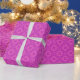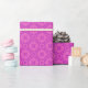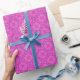 Un rouleau de Papier à enveloppement très élégant, avec un motif de motifs traditionnels de Tapisserie galloise à Magenta sur un arrière - plan rose Fuchsia.