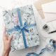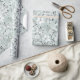 Papier Cadeau Chic Gris Bleu Fleurs Blanches Baby Shower