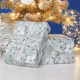 Papier Cadeau Chic Gris Bleu Fleurs Blanches Shower de Mariée