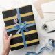 Papier Cadeau Chic luxe rayé Noir & Or