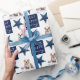 Cute Chien Chiot Pet Pet Photo Festive Star Christmas Wrapping Papier. Belle et festive étoile bleue. Joyeux Blanc, Joyeux, Jolly typographie. Le design a une photo personnalisée d'un chiot de chien - insérez votre chien préféré ou toute autre photo d'animal de compagnie dans le modèle et faites votre papier de Noël personnel unique.