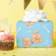 Papier Cadeau Chien mignon et os Bleu Simple Animal d'anniversai