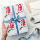 Papier Cadeau Chien mignon portant le Père Noël blanc rouge en N