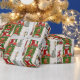 Chih Tzu Dog Noël assis à l'extérieur de la maison décorée avec la couronne de Noël, le sapin de Noël est une idée cadeau de Noël parfait pour les amoureux de les chiens.
