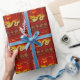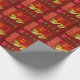 Papier traditionnel chinois dragon coupé avec lanternes motifs et rouges + souhaits en chinois et anglais. Conception sur le rouleau de papier d'emballage.