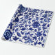 Papier Cadeau Chinois bleu marine foncé motif floral sur blanc