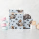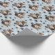 Un adorable petit chiot Beagle posé dans un panier d'osier est la caractéristique du motif sur ce papier d'emballage cadeau toute occasion. Le portrait se trouve au milieu d'un motif d'empreintes de pattes noirs et d'os blancs, et est répété sur un arrière - plan bleu argenté. Parfait pour tout Amoureux des chiens Beagle !