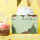 L'illustration originale de Destei d'un mignon manteau brun chocolat couleur Labrador Retriever race dog. Le chien est debout près d'un sapin de Noël festif orné d'ornements rouges et jaunes, d'une guirlande de perles blanches et d'une étoile jaune posée sur le sommet de l'arbre. Il y a aussi deux cadeaux emballés par l'arbre et il y a une zone de texte personnalisable qui se lit maintenant : "Joyeux Noël !". La couleur arrière - plan est vert clair.