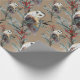 Un papier d'emballage de vacances d'une chouette de grange magnifiquement aquarelée en hiver reposant sur des branches de genièvre bleues avec des baies rouges dans un motif répétitif.