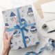 Papier Cadeau Chouettes d'hiver avec laine casquette bleu