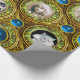 Elégant modèles photo florentins Renaissance, jaune rouge brun vert floral avec pierres saphir bleu 3D, classique, art raffiné Renaissance dynamique, chef-d'oeuvre de Bottega della Robbia ( Florence - Italie ). Design cool facile à customiser avec vos photos de famille.