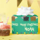 Christmas tree lights with Santa bear cartoon Wrapping Paper. Playful design with colorful light bulbs and custom seasons greeting message. Personalize with name of child. Personalized gift wrap rolls for the Holiday season.