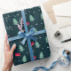 Papier Cadeau Christmas Trees et Holly Modern Pattern Dark Blue