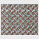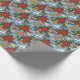 This charming Christmas wrapping paper features a delightful blue background adorned with vibrant red poinsettias, golden bells, leaping white reindeer, and cheerful gingerbread men. Accented with swirling red ribbons, glowing string lights, pine branches, and delicate snowflakes, it captures the joyful spirit of the holiday season in a classic, festive design.