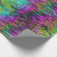 Multicalques de circuits irisés à l'huile foncé et brillants en arc-en-ciel dans un effet simulé par un faux holographe. (Cette version se répète de façon unique tous les 18 pouces de large, ce qui correspond le mieux à la façon dont le papier d'emballage est imprimé par incréments de 36 pouces.)