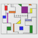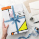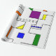Ce papier d'emballage a une conception Bauhaus de lignes allant verticalement et horizontalement pour faire une grille avec carrés, rectangles, triangles et cercles placés autour de la grille. Si vous aimez le design mais préférez différentes couleurs, envoyez-moi un message.