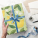 Papier Cadeau Citrons et fleurs blanches sur Arrière - plan vert