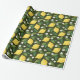 Papier Cadeau Citrons jaunes, Feuilles verts et fleurs blanches