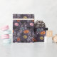Papier d'emballage d'Halloween avec un motif rempli de jack-o-lanternes, chauves-souris, fantômes et pierres tombales. Parfait pour les fêtes d'emballage ou cadeaux d'anniversaire d'octobre. Oeuvre originale de Marketa Stengl.