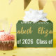 Ce papier d'emballage de graduation est vert forêt. Cet habillage élégant a un motif texte pour le nom et la classe du diplômé de 2025. Le nom (Montré : Elizabeth) apparaît dans un élégant faux (pas de feuille) script d'or. L'autre texte est blanc. Tout le texte peut être modifié.
