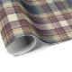 This elegant and contemporary gift wrapping paper showcases a plaid pattern in shades of green, dark blue, red, and ochre yellow, creating a classy and nostalgic English holiday atmosphere. The paper is perfect for wrapping Christmas gifts in a classic colonial style and complements a charming country cottage or log cabin theme.
