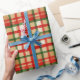 Papier Cadeau Classic Vert Aquarelle Rouge Motif d'art plaid