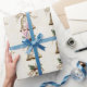 Cloche de Noël dorée Étoiles brillantes Feuilles vertes Papier d'emballage. Design unique, beau et élégant. Facile à personnaliser. Style, taille et couleurs de police peuvent être modifiés. Articles assortis disponibles.