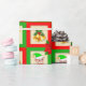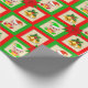 Papier Cadeau Cloches de Noël, poinsettia, elfes sur or