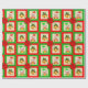 cloches de Noël, poinsettia et elfes mignons sur doré, vert et rouge.