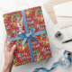 Papier cadeau de Noël coloré avec un dessin vintage de cloches de fête colorées en rouge, or et bleu avec un "Joyeux Noël" manuscrit de style ancien en rouge et vert. Vous pouvez commander des longueurs de rouleau personnalisées.