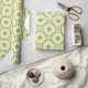 Un design très abstrait, une touche d'ambiance vintage, idéal si vous aimez la beauté des formes et des lignes rétro ! Ses couleurs sont douces, jaune, vert, les deux pastel, et il comporte un motif abstrait à répétition.