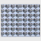 Amincissez la ligne bleue papier d'emballage de coeur avec un drapeau.