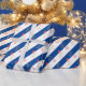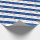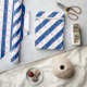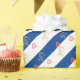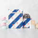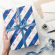 Festive coeur de joie motif sur rayé bleu royal et blanc arrière - plan papier enveloppant cadeau.