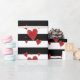Papier Cadeau Coeurs et rayures rouges d'aquarelle