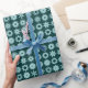 Papier Cadeau Cogs - Bleu clair vert sur Vert mousse foncé