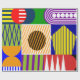 Ce papier d'emballage a un design Bauhaus de formes et de lignes faisant un collage dans les couleurs primaires et secondaires.