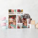 Célébrez la saison des fêtes avec ce papier d'emballage moderne et personnalisé. L'enveloppement cadeau dispose d'une pièce pour cinq de vos photos de famille préférées. Il y a aussi un espace avec un arrière - plan turquoise bleu et l'accueil Joyeux Noël (qui peut être édité) et votre nom de famille. Photos, salutation, et nom répéter dans un motif mignon pour un beau look festif.