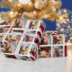 Papier Cadeau Collage photo de Noël 5 avec nom de famille, bleu