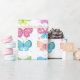 This cheerful picture shows six colorful butterflies with fun patterns on their wings. Each butterfly is different—some have polka dots, stripes, or swirls—and they all look like they're having a playful party in the sky!