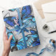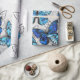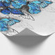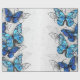 Vertical composition of réalistes, blue and white morpho butterflies on gray textured background. Morphine bleu.