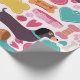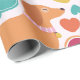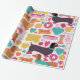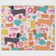 Un motif animé et coloré avec des dachshunds en pull, entouré de coeurs, os, empreintes de pattes, colliers et gâteries pour chien. Les couleurs vives et les illustrations charmantes célèbrent l'esprit joyeux des chiens.