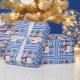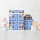 Joli papier d'emballage avec un motif de courtepointe bleue de Frosty le bonhomme de neige.