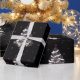 Cool et papier d'emballage totalement différent. Arrière - plan noir, flocons de neige pourpres et arbres dans le gris, le pourpre et le blanc avec de petits crânes sur eux. Plutôt Goth, très différent pour les vacances.
