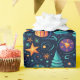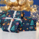 Un design coloré avec des ornements de Noël variés et des feuillages festifs sur un arrière - plan sombre, parfait pour envelopper les cadeaux et répandre la joie des vacances pendant la saison.