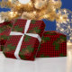 Un motif rustique vers le haut rouge nord et noir plaid avec détail de cône de pin
