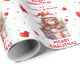 Le motif mignon sur ce papier d'emballage de Noël est d'un adorable singe portant un chapeau de Père Noël et sortant d'un paquet cadeau de Noël. Entre les images de singe est votre texte personnalisé en rouge. Tout est placé sur un arrière - plan de confettis rond multicolore qui est parsemé de coeurs rouges et de quelques étoiles dorées. C'est un papier parfait pour les grands-parents, les parents, les tantes et les oncles pour envelopper les cadeaux de famille. Assurez-vous de voir les étiquettes cadeaux et autres produits correspondants dans notre magasin.