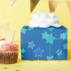 Papier enveloppant dans une constellation géométrique moderne, abstraite / ciel étoilé imprimé dans des tons doux d'aqua et bleu pâle sur un arrière - plan bleu cobalt profond