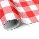 Papier d'emballage conçu avec un motif à chèque rouge et blanc de grande taille. Customisez l'arrière - plan blanc parmi d'autres options.