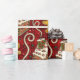 Un Enveloppement Coloré De Papier De Noël Design En Pain D'Épice Hommes Et Les Cookies De Maison Sur Arrière - plan Rouge Plaid